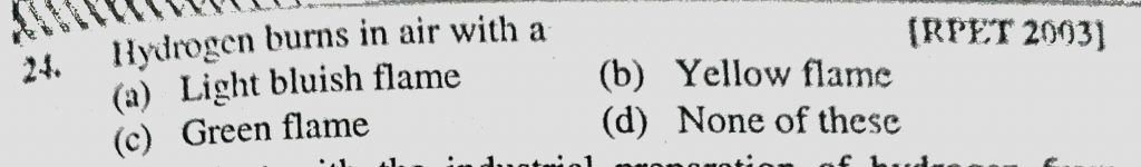 Hydrogen burns in air with a (a) Light bluish flame (b) Yellow flame (c) Green flame (d) None of these Hydrogen burns in air with a (a) Light bluish flame (b) Yellow flame (c) Green flame (d) None of these November 13, 2020 Category: Uncategorised (JEE Advanced Physics by BM Sharma + GMP Solutions) , Facebook Messenger WhatsApp Share this:TwitterFacebook Related