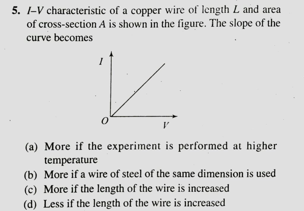 I -V characteristic of a copper wire of length L and area of cross section A is shown in the figure. The slope of the curve becomes I -V characteristic of a copper wire of length L and area of cross section A is shown in the figure. The slope of the curve becomes September 19, 2020 Category: Uncategorised (JEE Advanced Physics by BM Sharma + GMP Solutions) , Facebook Messenger WhatsApp Share this:TwitterFacebook Related