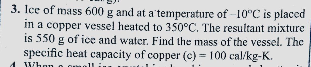 Ice of mass 600 g and at a temperature of -10 C is placed in a copper vessel heated to 350 C. The resultant mixture is 550 g of ice and water. Find the mass of the vessel. The specific Ice of mass 600 g and at a temperature of -10 C is placed in a copper vessel heated to 350 C. The resultant mixture is 550 g of ice and water. Find the mass of the vessel. The specific October 23, 2020 Category: Uncategorised (JEE Advanced Physics by BM Sharma + GMP Solutions) , Facebook Messenger WhatsApp Share this:TwitterFacebook Related