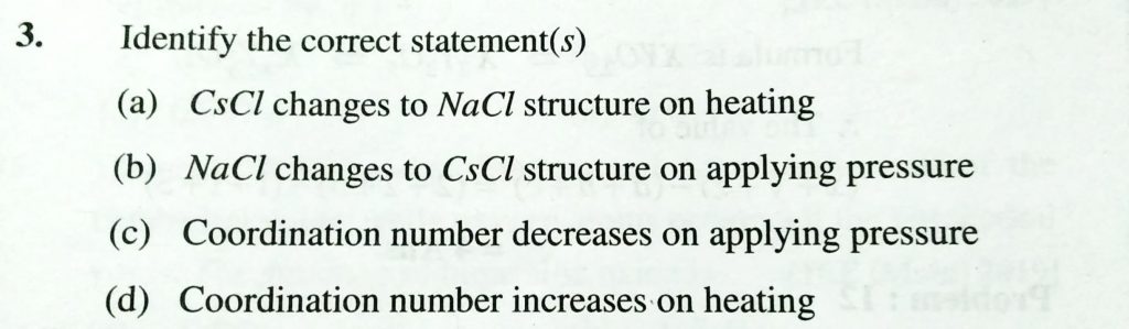 Identify the correct statement(s) (a) CsCl changes to NaCl structure on heating (b) NaCl changes to CsCl structure on applying pressure (c) Coordination number decreases on applying pressure (d) Coordination number increases on heating Sodium metal crystallizes in body Centedrd cubic lattice with a unit cell edge of 4.29 A. The radius of sodium atom is approximately February 10, 2021 Category: Uncategorised (JEE Advanced Physics by BM Sharma + GMP Solutions) , Facebook Messenger WhatsApp Share this:TwitterFacebook Related