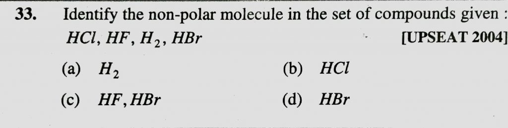 Identify the non – polar molecule in the set of compounds given HCL , HF , H2 HBr H2 HBr Hf Identify the non - polar molecule in the set of compounds given HCL December 2, 2020 Category: Uncategorised (JEE Advanced Physics by BM Sharma + GMP Solutions) , Facebook Messenger WhatsApp Share this:TwitterFacebook Related