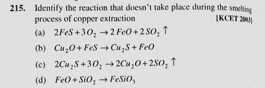 Identify the reaction that doesn’t take place during the smelting process of copper extraction Identify the reaction that doesn't take place during the smelting process of copper extraction December 2, 2020 Category: Uncategorised (JEE Advanced Physics by BM Sharma + GMP Solutions) , Facebook Messenger WhatsApp Share this:TwitterFacebook Related
