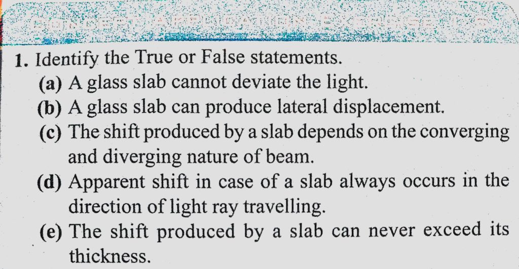 Identify the True or False statements. (a) A glass slab cannot deviate the light. (b) A glass slab can produce lateral displacement. (c) The shift produced by a slab depends on Identify the True or False statements. (a) A glass slab cannot deviate the light. (b) A glass slab can produce lateral displacement. (c) The shift produced by a slab depends on October 5, 2020 Category: Uncategorised (JEE Advanced Physics by BM Sharma + GMP Solutions) , Facebook Messenger WhatsApp Share this:TwitterFacebook Related