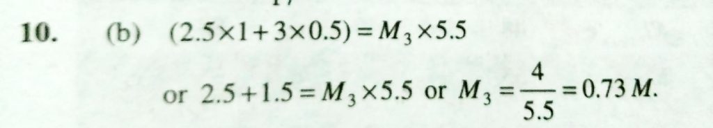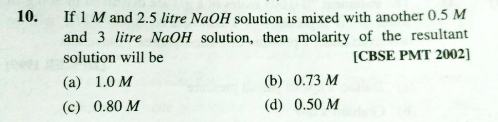 If 1 M and 2.5 litre NaOH solution is mixed with another 0.5 M and 3 litre NaOH solution , then molarity of the resultant solution will be If 1 M and 2.5 litre NaOH solution is mixed with another 0.5 M and 3 litre NaOH solution then molarity of the resultant solution will be December 10, 2020 Category: Uncategorised (JEE Advanced Physics by BM Sharma + GMP Solutions) , Facebook Messenger WhatsApp Share this:TwitterFacebook Related