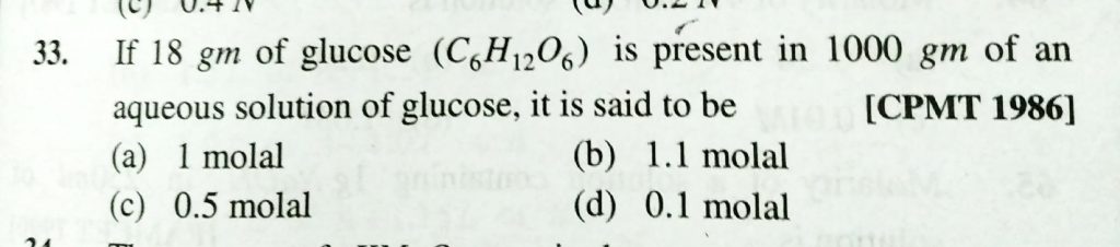 If 18 gm of glucose ( C6 H12 O6 ) is present in 1000 gm of an aqueous solution of glucose , it is said to be If 18 gm of glucose ( C6 H12 O6 ) is present in 1000 gm of an aqueous solution of glucose it is said to be December 11, 2020 Category: Uncategorised (JEE Advanced Physics by BM Sharma + GMP Solutions) , Facebook Messenger WhatsApp Share this:TwitterFacebook Related