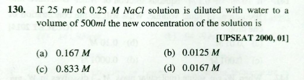 If 25 ml of 0.25 M NaCL solution is diluted with water to a volume of 500 ml the new concentration of the solution is If 25 ml of 0.25 M NaCL solution is diluted with water to a volume of 500 ml the new concentration of the solution is December 12, 2020 Category: Uncategorised (JEE Advanced Physics by BM Sharma + GMP Solutions) , Facebook Messenger WhatsApp Share this:TwitterFacebook Related