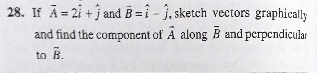 If A = 2i + j and B = i – j, sketch vectors graphically and find the component of A along B and perpendicular to B. If A = 2i + j and B = i - j sketch vectors graphically and find the component of A along B and perpendicular to B. September 17, 2020 Category: Uncategorised (JEE Advanced Physics by BM Sharma + GMP Solutions) , Facebook Messenger WhatsApp Share this:TwitterFacebook Related