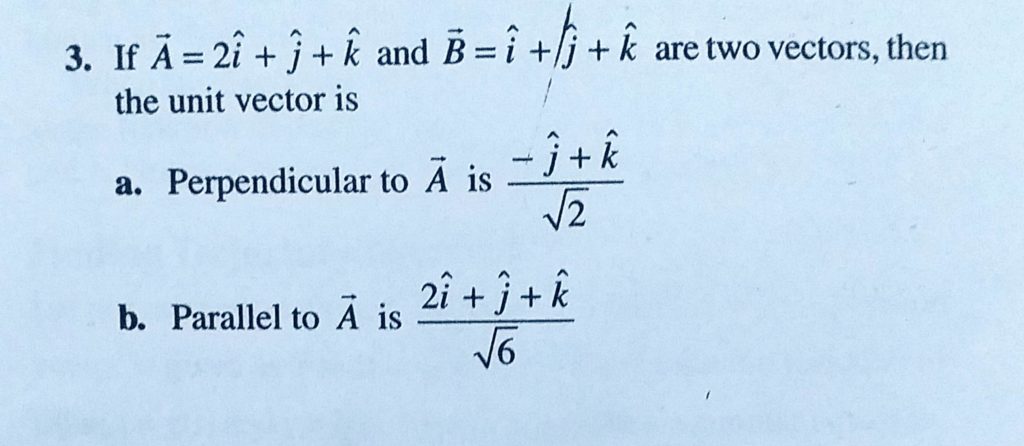 If A = 2i + j + k and B = i + j + k are two vectors, then the unit vector is If A = 2i + j + k and B = i + j + k are two vectors then the unit vector is September 17, 2020 Category: Uncategorised (JEE Advanced Physics by BM Sharma + GMP Solutions) , Facebook Messenger WhatsApp Share this:TwitterFacebook Related