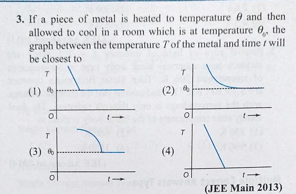 If a piece of metal is heated to temperature theta and then allowed to cool in a room which is at temperature theta 0, the graph between the temperature T of the metal and time t will If a piece of metal is heated to temperature theta and then allowed to cool in a room which is at temperature theta 0 the graph between the temperature T of the metal and time t will October 27, 2020 Category: Uncategorised (JEE Advanced Physics by BM Sharma + GMP Solutions) , Facebook Messenger WhatsApp Share this:TwitterFacebook Related