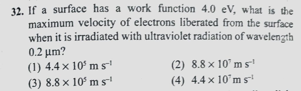 If a surface has a work function 4.0 eV, what is the maximum velocity of electrons liberated from the surface when it is irradiated with ultraviolet radiation of wavelength 0.2 mu m? If a surface has a work function 4.0 eV what is the maximum velocity of electrons liberated from the surface when it is irradiated with ultraviolet radiation of wavelength 0.2 mu m? October 14, 2020 Category: Uncategorised (JEE Advanced Physics by BM Sharma + GMP Solutions) , Facebook Messenger WhatsApp Share this:TwitterFacebook Related