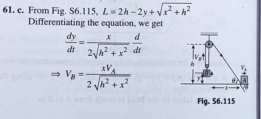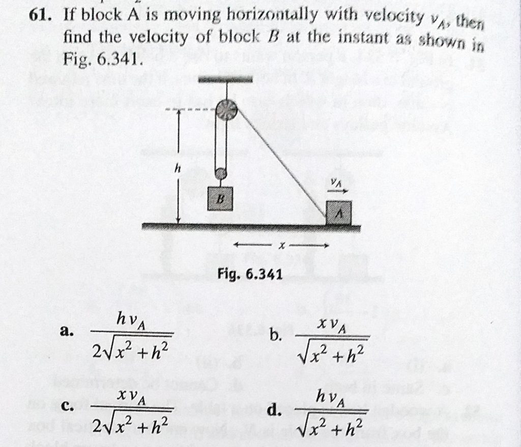 If block A is moving horizontally with velocity vA, then find the velocity of block b at the instant as shown in Fig. 6.341. If block A is moving horizontally with velocity vA then find the velocity of block b at the instant as shown in Fig. 6.341. September 29, 2020 Category: Uncategorised (JEE Advanced Physics by BM Sharma + GMP Solutions) , Facebook Messenger WhatsApp Share this:TwitterFacebook Related