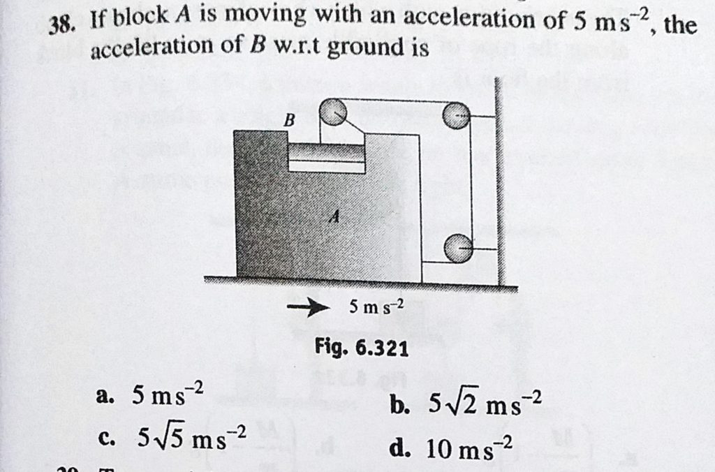 If block A is moving with an acceleration of 5 m/s^2, the acceleration of B w.r.t. ground is If block A is moving with an acceleration of 5 m/s^2 the acceleration of B w.r.t. ground is September 29, 2020 Category: Uncategorised (JEE Advanced Physics by BM Sharma + GMP Solutions) , Facebook Messenger WhatsApp Share this:TwitterFacebook Related