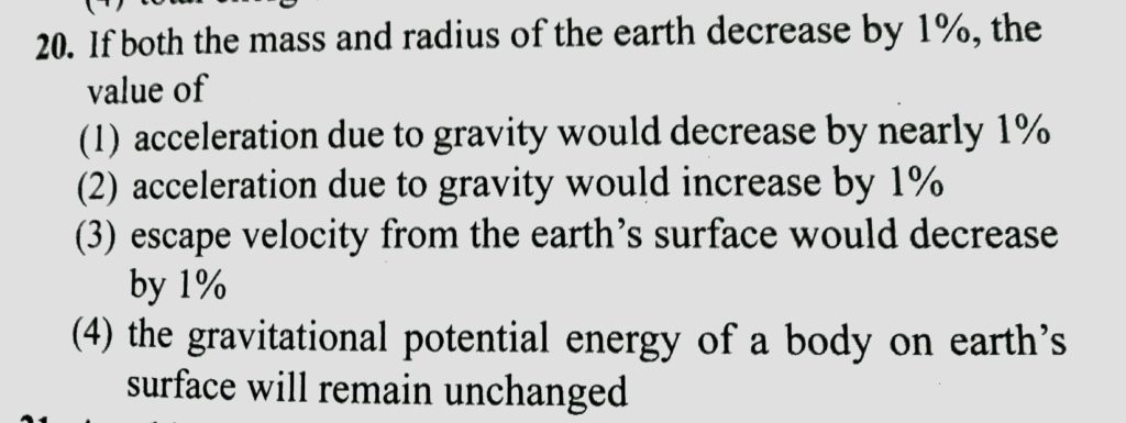 If both the mass and radius of the earth decrease by 1%, the value of If both the mass and radius of the earth decrease by 1% the value of October 5, 2020 Category: Uncategorised (JEE Advanced Physics by BM Sharma + GMP Solutions) , Facebook Messenger WhatsApp Share this:TwitterFacebook Related