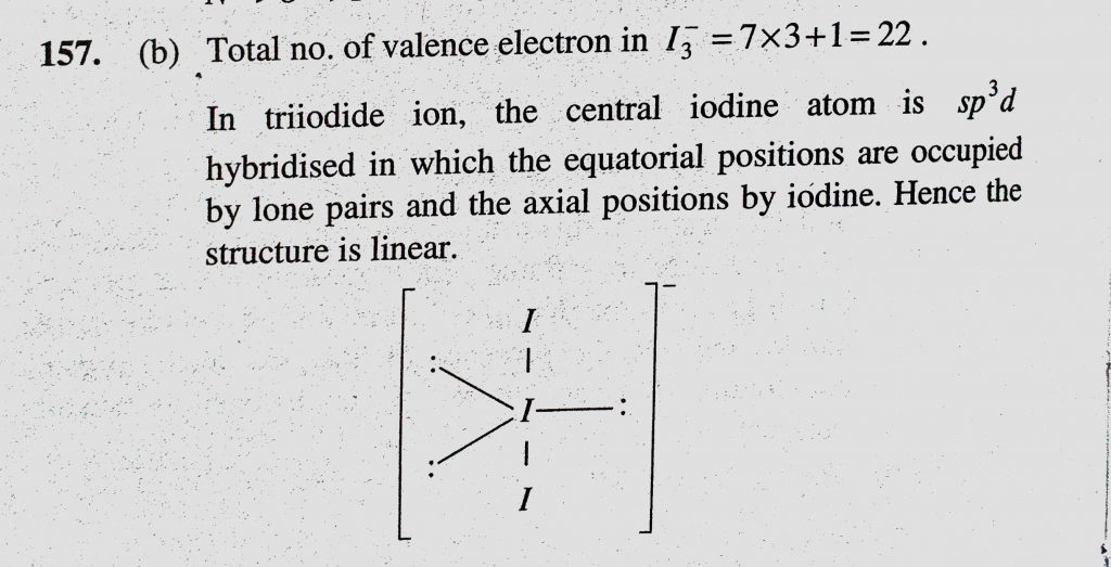 If I2 is dissolved in aqueous KI, the intense yellow species I3-, is formed. The structure of I3- ions is (a) Square pyramidal (b) Trigonal bipyramidal If I2 is dissolved in aqueous KI is formed. The structure of I3- ions is (a) Square pyramidal (b) Trigonal bipyramidal the intense yellow species I3- November 25, 2020 Category: Uncategorised (JEE Advanced Physics by BM Sharma + GMP Solutions) , Facebook Messenger WhatsApp Share this:TwitterFacebook Related