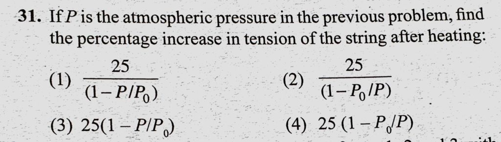 If P is the atmospheric pressure in the previous problem, find the percentage increase in tension of the string after heating: find the percentage increase in tension of the string after heating: If P is the atmospheric pressure in the previous problem October 27, 2020 Category: Uncategorised (JEE Advanced Physics by BM Sharma + GMP Solutions) , Facebook Messenger WhatsApp Share this:TwitterFacebook Related