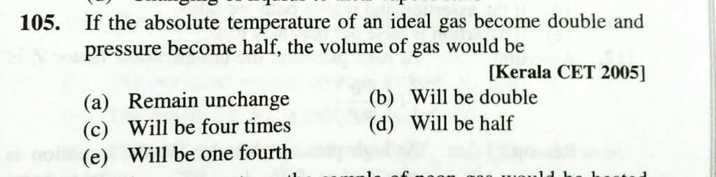 If the absolute temperature of an ideal gas become double and pressure become half, the volume of gas would be If the absolute temperature of an ideal gas become double and pressure become half the volume of gas would be February 11, 2021 Category: Uncategorised (JEE Advanced Physics by BM Sharma + GMP Solutions) , Facebook Messenger WhatsApp Share this:TwitterFacebook Related