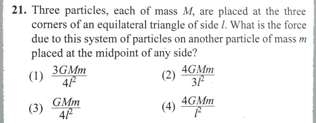 Three particles each of mass M are placed at the three corners of an equilateral triangle of side l. what is the force due to this system of particles on another particles of mass m placed at the midpoint of any side? If the distance between centres of the earth and the moon is d and the mass of the earth is 81 times the mass of the moon the gravitational field will be zero? then at what distance from centre of the earth October 3, 2020 Category: Uncategorised (JEE Advanced Physics by BM Sharma + GMP Solutions) , Facebook Messenger WhatsApp Share this:TwitterFacebook Related