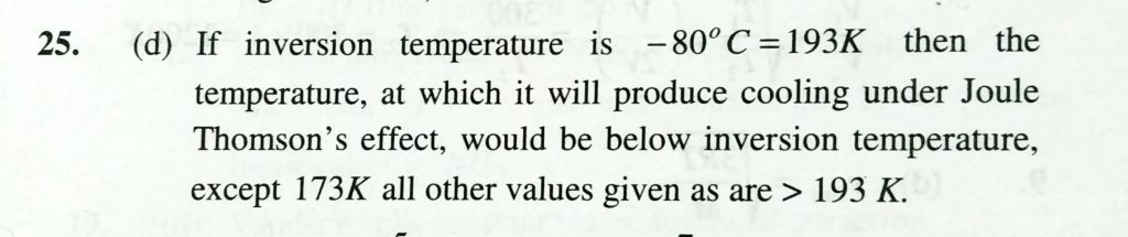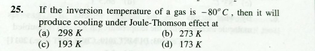 IF the inversion temperature of gas is -80 degree C , then it will produce cooling under Joule – Thomson effect at IF the inversion temperature of gas is -80 degree C then it will produce cooling under Joule - Thomson effect at February 11, 2021 Category: Uncategorised (JEE Advanced Physics by BM Sharma + GMP Solutions) , Facebook Messenger WhatsApp Share this:TwitterFacebook Related