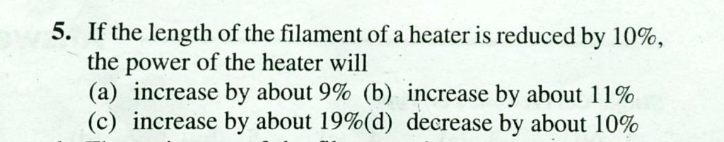 If the length of the filament of a heater is reduced by 10 %, the power of the heater will If the length of the filament of a heater is reduced by 10 % the power of the heater will September 21, 2020 Category: Uncategorised (JEE Advanced Physics by BM Sharma + GMP Solutions) , Facebook Messenger WhatsApp Share this:TwitterFacebook Related