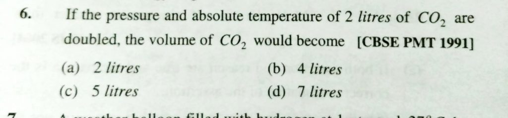 If the pressure and absolute temperature of 2 litres of CO2 are doubled, the volume of CO2 would become (a) 2l (b) 4L (c) 5L (d) 7L If the pressure and absolute temperature of 2 litres of CO2 are doubled the volume of CO2 would become (a) 2l (b) 4L (c) 5L (d) 7L February 10, 2021 Category: Uncategorised (JEE Advanced Physics by BM Sharma + GMP Solutions) , Facebook Messenger WhatsApp Share this:TwitterFacebook Related