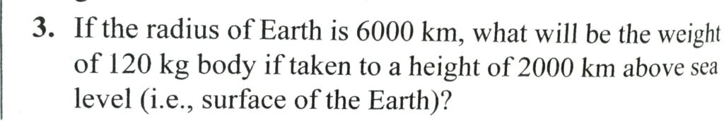 If the radius of Earth is 6000 km, what will be the weight of 120 kg body if taken to a height of 2000 km above sea level ( i.e. surface of the Earth )? If the radius of Earth is 6000 km what will be the weight of 120 kg body if taken to a height of 2000 km above sea level ( i.e. surface of the Earth )? October 2, 2020 Category: Uncategorised (JEE Advanced Physics by BM Sharma + GMP Solutions) , Facebook Messenger WhatsApp Share this:TwitterFacebook Related