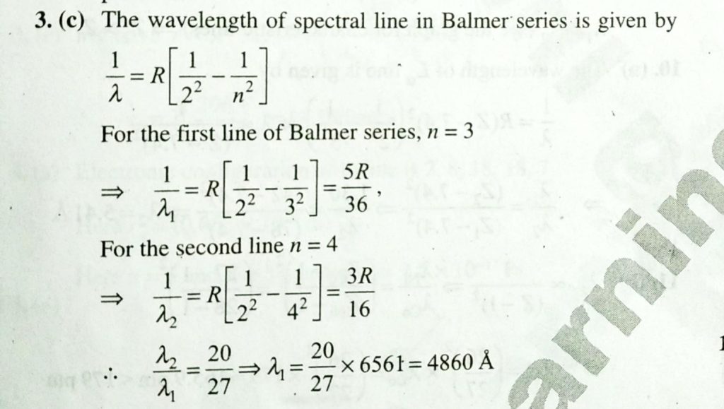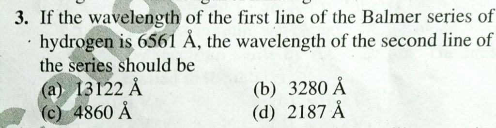If the wavelength of the first line of the Balmer series of hydrogen is 6561 A, the wavelength of the second line of the series should be If the wavelength of the first line of the Balmer series of hydrogen is 6561 A the wavelength of the second line of the series should be September 14, 2020 Category: Uncategorised (JEE Advanced Physics by BM Sharma + GMP Solutions) , Facebook Messenger WhatsApp Share this:TwitterFacebook Related