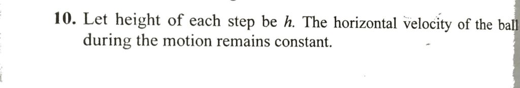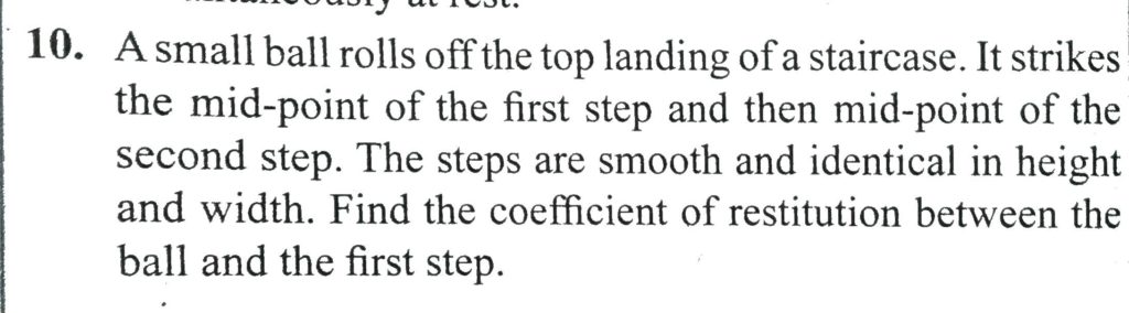 A small ball rolls off the top landing of a staircase. It strikes the mid point of the first step and then mid point of the second step. The steps are smooth & identical in height & width. The coefficient of restitution between the ball & the first step