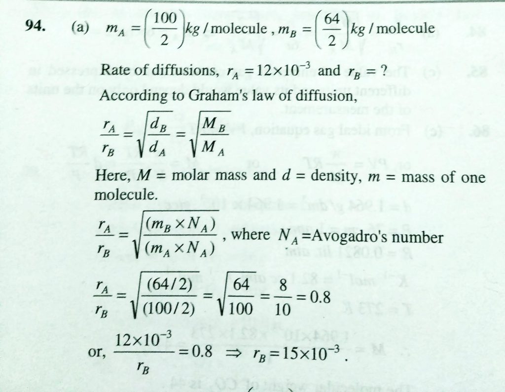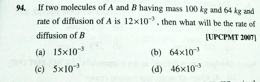 If two molecules of A and B having mass 100 kg and 64 kg and rate of diffusion of A is 12 x 10^-3 , then what will be the rate of diffusion of B If two molecules of A and B having mass 100 kg and 64 kg and rate of diffusion of A is 12 x 10^-3 then what will be the rate of diffusion of B February 11, 2021 Category: Uncategorised (JEE Advanced Physics by BM Sharma + GMP Solutions) , Facebook Messenger WhatsApp Share this:TwitterFacebook Related
