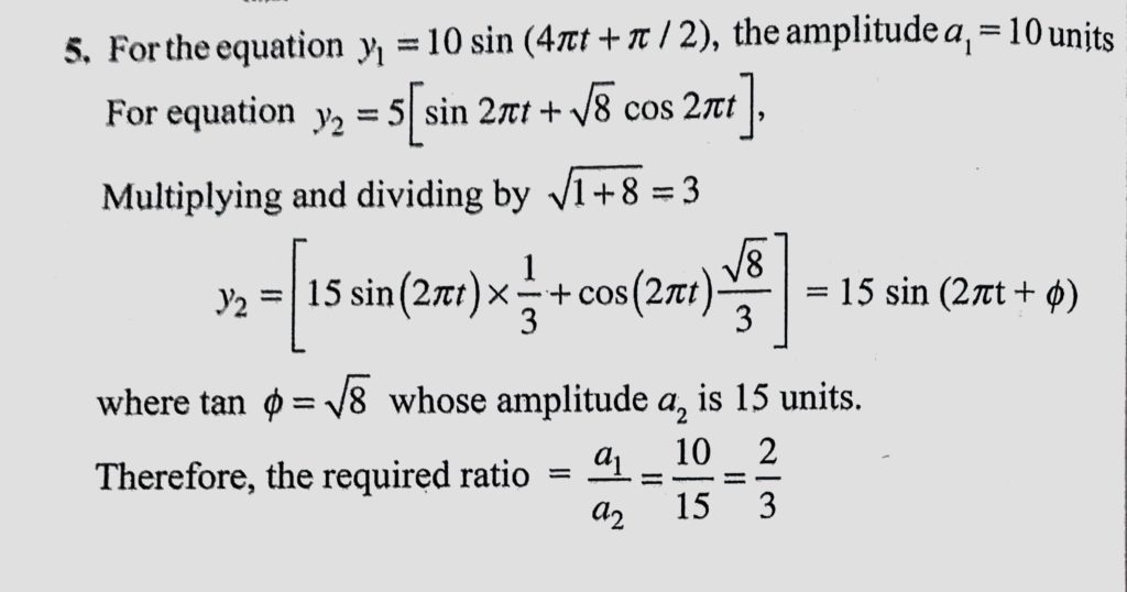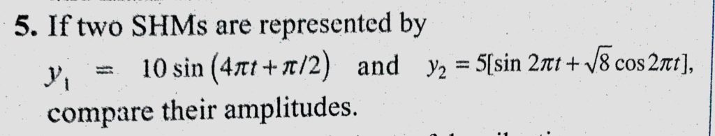 If two SHMs are represented by y1 = 10 sin (4 pit t + pie/2) and y2 = 5 (sin 2 pie t + root 8 cos 2 pie t), compare their amplitudes. compare their amplitudes. If two SHMs are represented by y1 = 10 sin (4 pit t + pie/2) and y2 = 5 (sin 2 pie t + root 8 cos 2 pie t) October 30, 2020 Category: Uncategorised (JEE Advanced Physics by BM Sharma + GMP Solutions) , Facebook Messenger WhatsApp Share this:TwitterFacebook Related