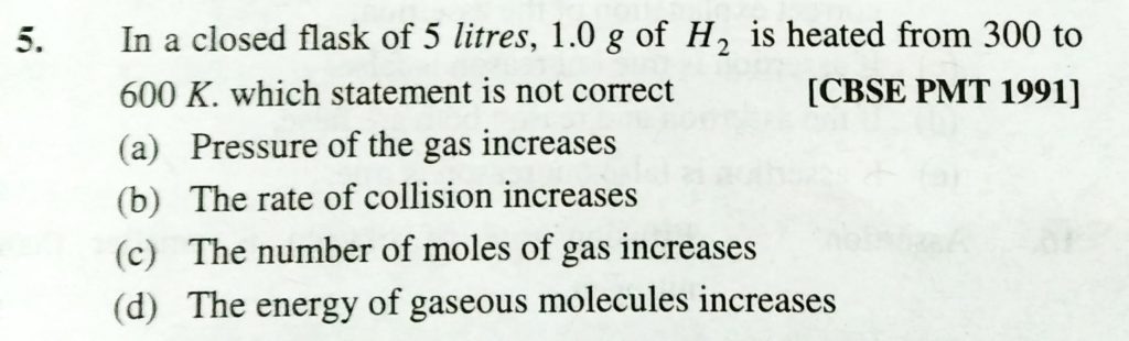 In a closed flask of 5 litres , 1.0 g of H2 is heated from 300 to 600 K. which statement is not correct 1.0 g of H2 is heated from 300 to 600 K. which statement is not correct In a closed flask of 5 litres February 10, 2021 Category: Uncategorised (JEE Advanced Physics by BM Sharma + GMP Solutions) , Facebook Messenger WhatsApp Share this:TwitterFacebook Related
