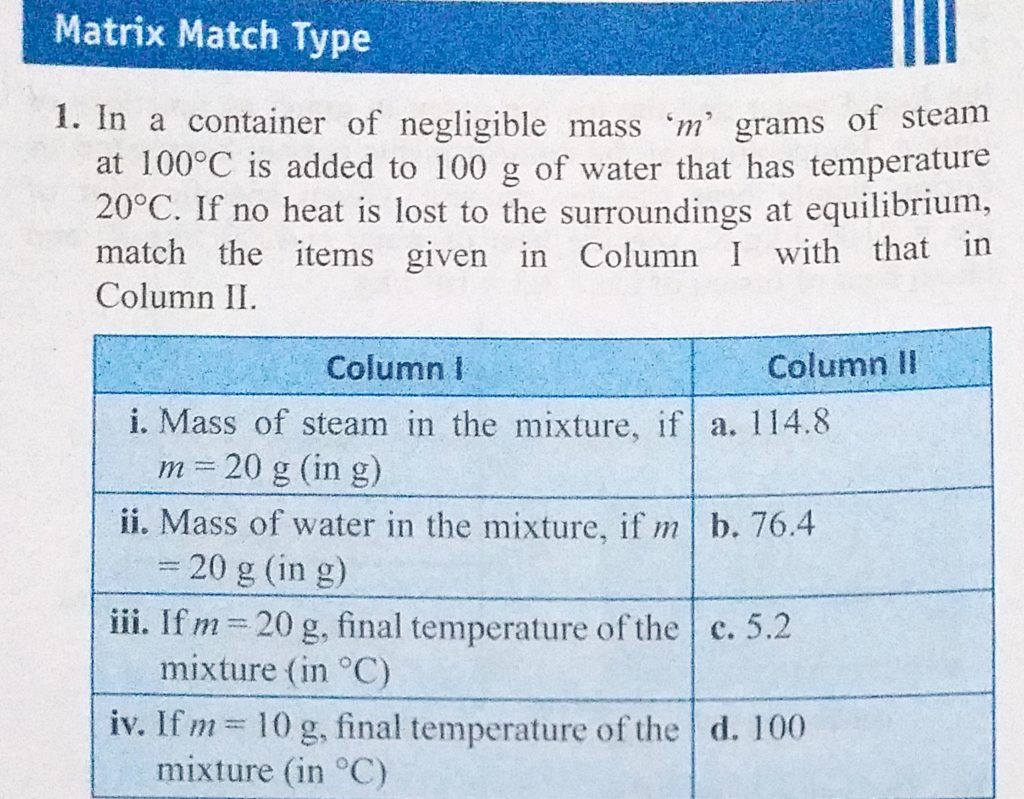In a container of negligible mass m grams of steam at 100 C is added to 100 g of water that has temperature 20 C. If no heat is lost to the surrounding at equilibrium, match the items In a container of negligible mass m grams of steam at 100 C is added to 100 g of water that has temperature 20 C. If no heat is lost to the surrounding at equilibrium match the items October 24, 2020 Category: Uncategorised (JEE Advanced Physics by BM Sharma + GMP Solutions) , Facebook Messenger WhatsApp Share this:TwitterFacebook Related
