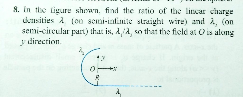 In a figure shown find the ratio of the linear charge densites λ1 (on semi-infinite straight wire) and λ2 (on semi-circular part) that is, λ1/λ2 so that the field at O is along y direction. In a figure shown find the ratio of the linear charge densites λ1 (on semi-infinite straight wire) and λ2 (on semi-circular part) that is λ1/λ2 so that the field at O is along y direction. October 30, 2020 Category: Uncategorised (JEE Advanced Physics by BM Sharma + GMP Solutions) , Facebook Messenger WhatsApp Share this:TwitterFacebook Related