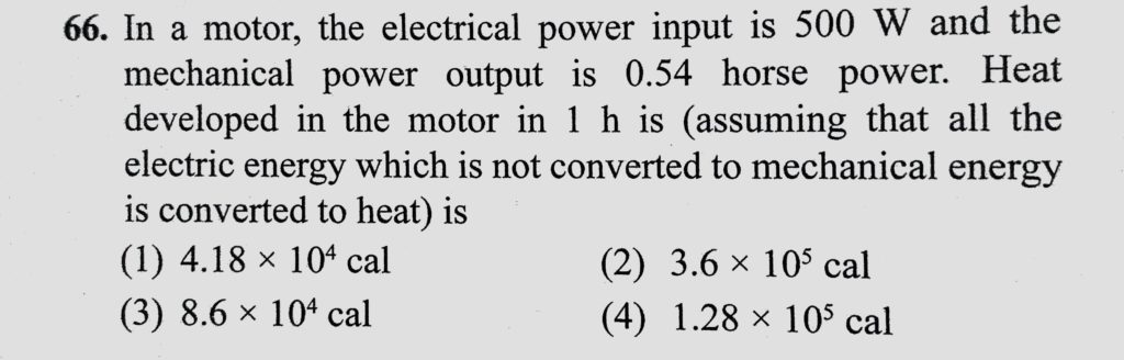 In a motor, the electrical power input is 500 W and the mechanical power output is 0.54 horse power. Heat developed in the motor in 1 h is (assuming that all the electric energy In a motor the electrical power input is 500 W and the mechanical power output is 0.54 horse power. Heat developed in the motor in 1 h is (assuming that all the electric energy October 24, 2020 Category: Uncategorised (JEE Advanced Physics by BM Sharma + GMP Solutions) , Facebook Messenger WhatsApp Share this:TwitterFacebook Related