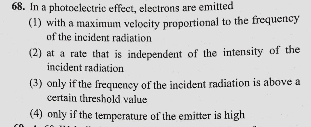 In a photoelectric effect, electrons are emitted (1) with a maximum velocity proportional to the frequency of the incident radiation (2) at a rate that is electrons are emitted (1) with a maximum velocity proportional to the frequency of the incident radiation (2) at a rate that is In a photoelectric effect October 14, 2020 Category: Uncategorised (JEE Advanced Physics by BM Sharma + GMP Solutions) , Facebook Messenger WhatsApp Share this:TwitterFacebook Related