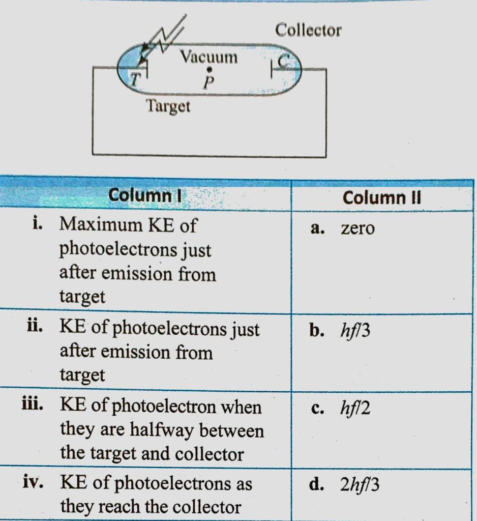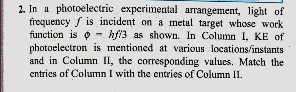 In a photoelectric experimental arrangement, light of frequency f is incident on a metal target whose work function is phi = hf/3 as shown. In Column 1, KE of photoelectron is mentioned In a photoelectric experimental arrangement KE of photoelectron is mentioned light of frequency f is incident on a metal target whose work function is phi = hf/3 as shown. In Column 1 October 14, 2020 Category: Uncategorised (JEE Advanced Physics by BM Sharma + GMP Solutions) , Facebook Messenger WhatsApp Share this:TwitterFacebook Related