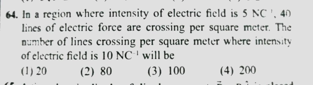 In a region where intensity of electric field is 5 N/C , 40 lines of electric force are crossing per square metre. The number of lines crossing per square metre where intensity of electric field is 10 N/C will be : 40 lines of electric force are crossing per square metre. The number of lines crossing per square metre where intensity of electric field is 10 N/C will be : In a region where intensity of electric field is 5 N/C October 30, 2020 Category: Uncategorised (JEE Advanced Physics by BM Sharma + GMP Solutions) , Facebook Messenger WhatsApp Share this:TwitterFacebook Related
