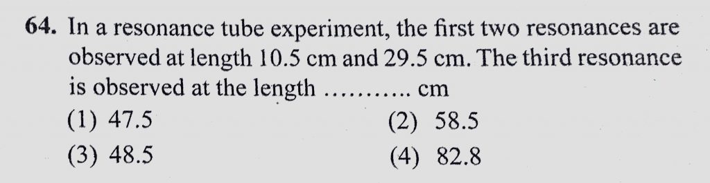In a resonance tube experiment, the first two resonances are observed at length 10.5 cm and 29.5 cm. The third resonance is observed at the length ………………………… cm In a resonance tube experiment the first two resonances are observed at length 10.5 cm and 29.5 cm. The third resonance is observed at the length .............................. cm November 6, 2020 Category: Uncategorised (JEE Advanced Physics by BM Sharma + GMP Solutions) , Facebook Messenger WhatsApp Share this:TwitterFacebook Related