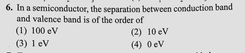 In a semiconductor, the separation between conduction band and valence band is of the order of In a semiconductor the separation between conduction band and valence band is of the order of October 21, 2020 Category: Uncategorised (JEE Advanced Physics by BM Sharma + GMP Solutions) , Facebook Messenger WhatsApp Share this:TwitterFacebook Related