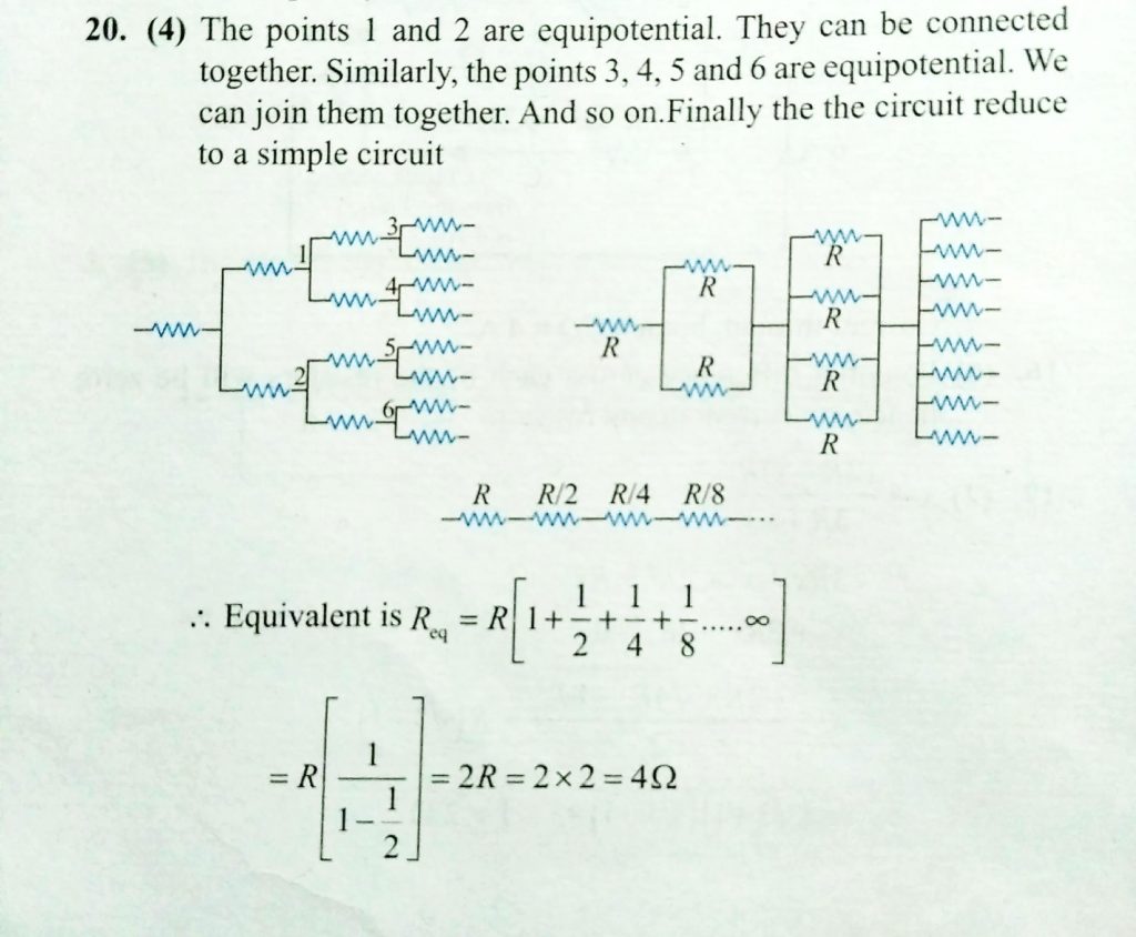 In an infinite network of resistances, each resistance of value R = 2 ohm , are arranged as shown in the figure. Find the equivalent resistance between A and B ( in ohm ). are arranged as shown in the figure. Find the equivalent resistance between A and B ( in ohm ). each resistance of value R = 2 ohm In an infinite network of resistances November 12, 2020 Category: Uncategorised (JEE Advanced Physics by BM Sharma + GMP Solutions) , Facebook Messenger WhatsApp Share this:TwitterFacebook Related