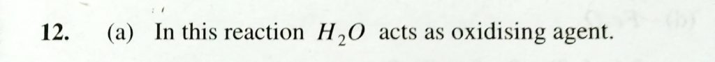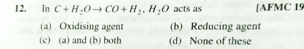 In C+H2O gives H2 , H2O acts as (a) Oxidising agent (b) Reducing agent (c) a and b both (d) none of these H2O acts as (a) Oxidising agent (b) Reducing agent (c) a and b both (d) none of these In C+H2O gives H2 November 23, 2020 Category: Uncategorised (JEE Advanced Physics by BM Sharma + GMP Solutions) , Facebook Messenger WhatsApp Share this:TwitterFacebook Related