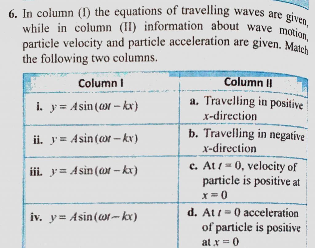 In column (1) the equations of travelling waves are given, while in column (2) information about wave motion, particle velocity and particle acceleration are given. Match the following In column (1) the equations of travelling waves are given particle velocity and particle acceleration are given. Match the following while in column (2) information about wave motion November 5, 2020 Category: Uncategorised (JEE Advanced Physics by BM Sharma + GMP Solutions) , Facebook Messenger WhatsApp Share this:TwitterFacebook Related