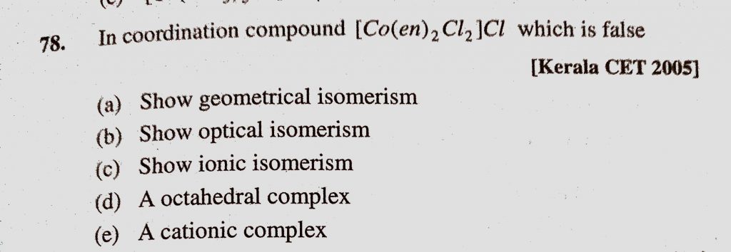 In coordination compound (Co(en)2Cl2)Cl which is false (a) Show geometrical isomerism (b) Show optical isomerism In coordination compound (Co(en)2Cl2)Cl which is false (a) Show geometrical isomerism (b) Show optical isomerism December 4, 2020 Category: Uncategorised (JEE Advanced Physics by BM Sharma + GMP Solutions) , Facebook Messenger WhatsApp Share this:TwitterFacebook Related