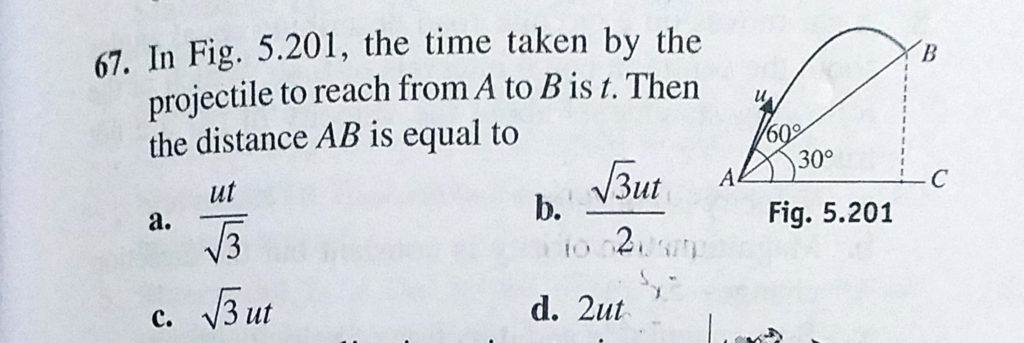 In Fig. 5.201, the time taken by the projectile to reach from A to B is t. Then the distance AB is equal to In Fig. 5.201 the time taken by the projectile to reach from A to B is t. Then the distance AB is equal to September 24, 2020 Category: Uncategorised (JEE Advanced Physics by BM Sharma + GMP Solutions) , Facebook Messenger WhatsApp Share this:TwitterFacebook Related