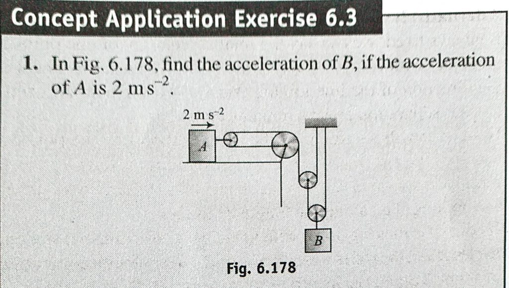 In Fig. 6.178, find the acceleration of B, if the acceleration of A is 2 m/s^2. find the acceleration of B if the acceleration of A is 2 m/s^2. In Fig. 6.178 September 28, 2020 Category: Uncategorised (JEE Advanced Physics by BM Sharma + GMP Solutions) , Facebook Messenger WhatsApp Share this:TwitterFacebook Related