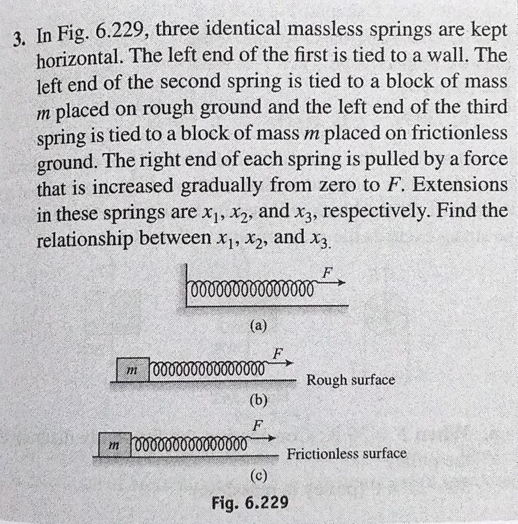 In Fig. 6.229, three identical massless springs are kept horizontal. The left end of the first is tied to a wall. The left end of the second spring is tied to a block of mass m placed on rough ground and the left end of the third In Fig. 6.229 The velocities of A and B are shown in Fig. 6.196. Find the speed (in m/s) of block C. (Assume that the pulleys and string are ideal.) September 29, 2020 Category: Uncategorised (JEE Advanced Physics by BM Sharma + GMP Solutions) , Facebook Messenger WhatsApp Share this:TwitterFacebook Related