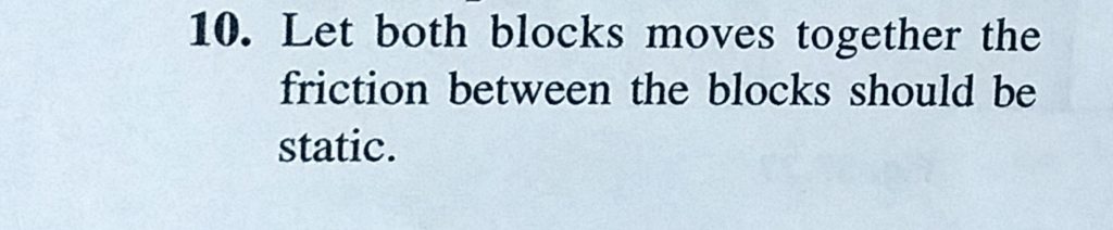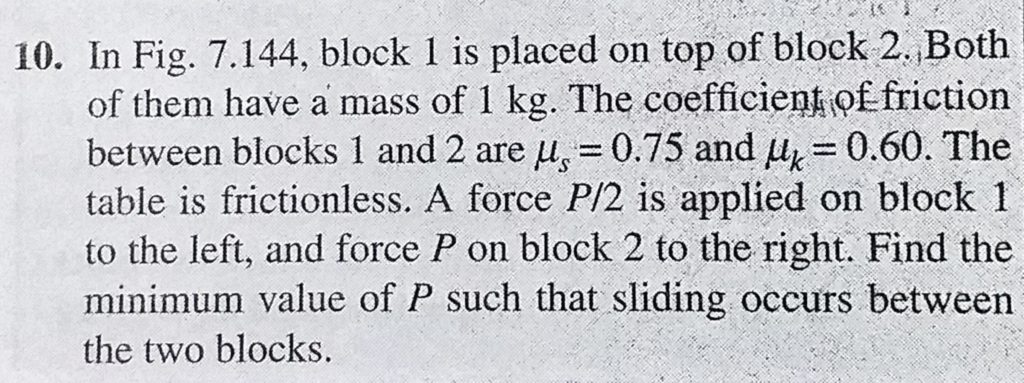 In Fig. 7.144, block 1 is placed on top of block 2. Both of them have a mass of 1 kg. The coefficient of friction between blocks 1 and 2 are mu s = 0.75 and mu k = 0.60. The table is frictionless. block 1 is placed on top of block 2. Both of them have a mass of 1 kg. The coefficient of friction between blocks 1 and 2 are mu s = 0.75 and mu k = 0.60. The table is frictionless. In Fig. 7.144 September 30, 2020 Category: Uncategorised (JEE Advanced Physics by BM Sharma + GMP Solutions) , Facebook Messenger WhatsApp Share this:TwitterFacebook Related