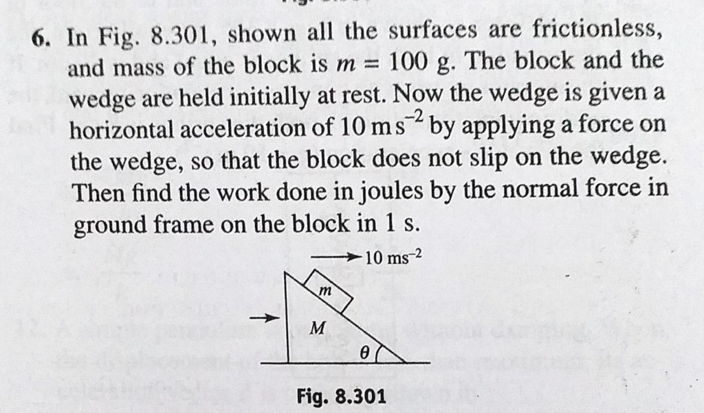In Fig. 8.301, shown all the surfaces are frictionless, and mass of the block is m = 100 g. The block and the wedge are held initially at rest. Now the wedge is given a horizontal acceleration and mass of the block is m = 100 g. The block and the wedge are held initially at rest. Now the wedge is given a horizontal acceleration In Fig. 8.301 shown all the surfaces are frictionless October 5, 2020 Category: Uncategorised (JEE Advanced Physics by BM Sharma + GMP Solutions) , Facebook Messenger WhatsApp Share this:TwitterFacebook Related