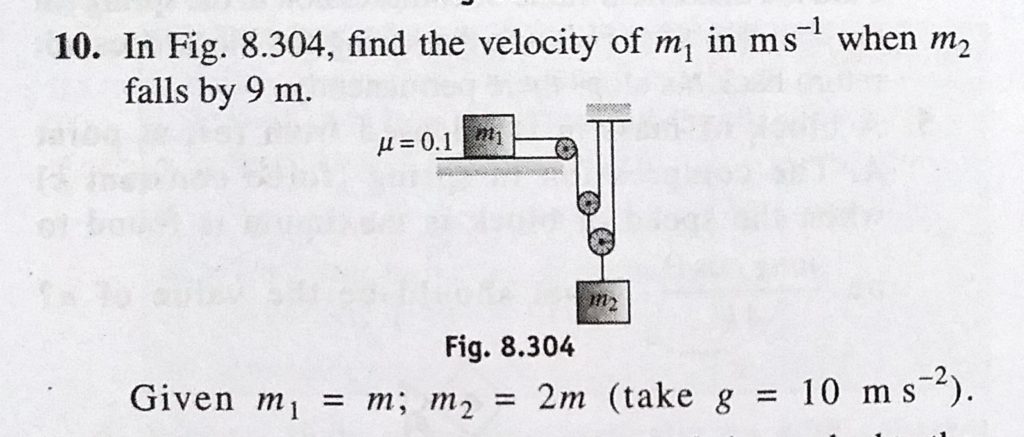 In Fig. 8.304, find the velocity of m1 in m/s when m2 falls by 9 m. Given m1 = m; m2 = 2m find the velocity of m1 in m/s when m2 falls by 9 m. Given m1 = m; m2 = 2m In Fig. 8.304 October 5, 2020 Category: Uncategorised (JEE Advanced Physics by BM Sharma + GMP Solutions) , Facebook Messenger WhatsApp Share this:TwitterFacebook Related