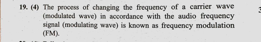 In frequency modulation (1) the amplitude of modulated wave varies as frequency of carrier wave (2) the frequency of modulated wave varies as amplitude of modulating wave In frequency modulation (1) the amplitude of modulated wave varies as frequency of carrier wave (2) the frequency of modulated wave varies as amplitude of modulating wave October 23, 2020 Category: Uncategorised (JEE Advanced Physics by BM Sharma + GMP Solutions) , Facebook Messenger WhatsApp Share this:TwitterFacebook Related