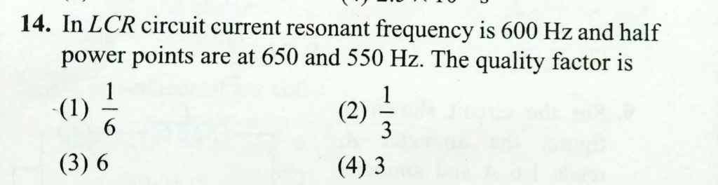 In LCR circuit current resonant frequency is 600 Hz and half power are at 650 and 550 Hz. The quality factor is In LCR circuit current resonant frequency is 600 Hz and half power are at 650 and 550 Hz. The quality factor is October 27, 2020 Category: Uncategorised (JEE Advanced Physics by BM Sharma + GMP Solutions) , Facebook Messenger WhatsApp Share this:TwitterFacebook Related